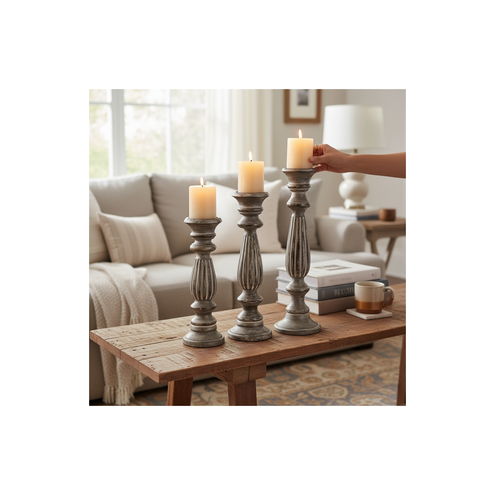 Set of 3 Colonial Pillar Holder-Whitewashed over B