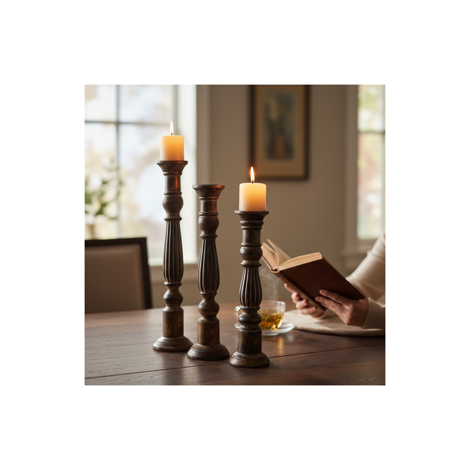 Set of 3 Liverpool Pillar Holder-Medium Oak Staine