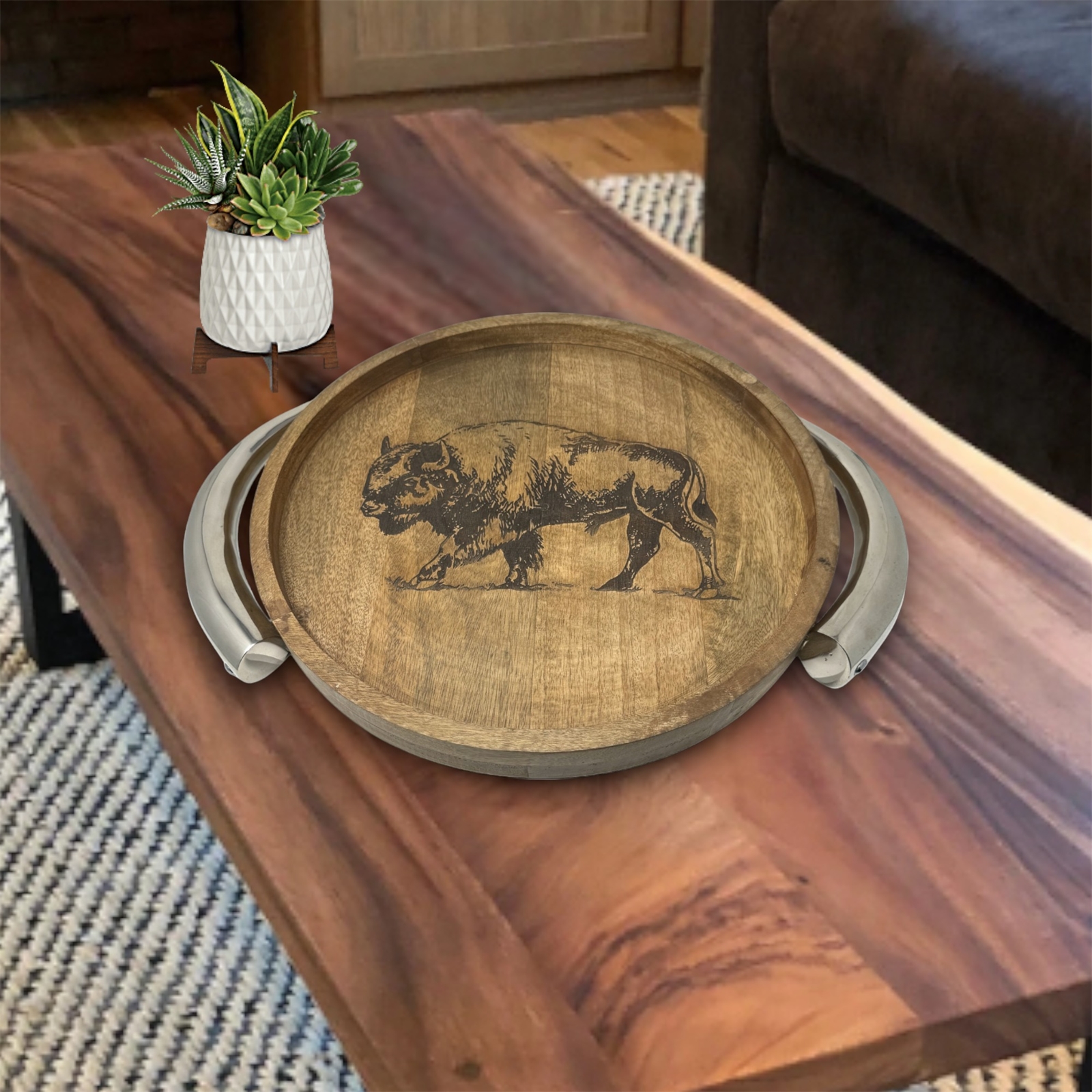 Deerfield Wood Platter with Aluminum Handles - Bla
